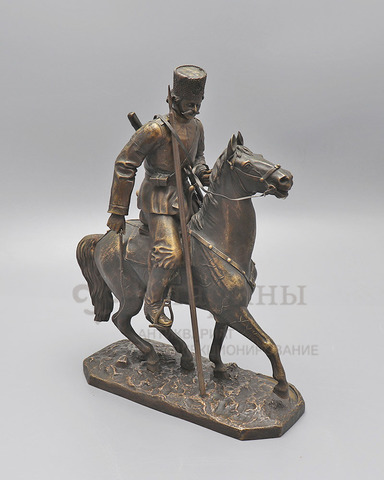 В версии Лансере всадник движется вправо, голова повёрнута к зрителю, конь стоит на задних ногах, передние согнуты, хвост поднят. Основа овальная, напоминающая место боевых действий. Плетень находится в области живота, фашина — у задних ног. Конь имеет арабские корни, вероятно, орловского или орлово-ростопчинского жеребца.