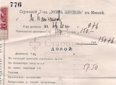 Старинный зарплатный квиток № 776 служащего Товарищества «Эмиль Циндель» с вычетом расходов на аренду квартиры,