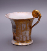 Материал: Фарфор, живопись, золочение Размер: Выс. 7,5; д. блюдца 14 см |