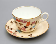 Старинная чайная пара с цветочной росписью, завод братьев Корниловых, фарфор, 19 в.Артикул: 13252 Нет в наличии