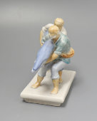 Авторская статуэтка «Счастливые рыбаки», скульптор А. Г. Сотников, Дулево, 1950-60 гг.Артикул: 14573 Нет в наличии