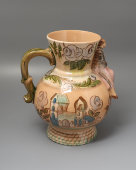 Большой расписной кувшин «Селянка», обливная керамика, Гжель, 1960-еАртикул: 13999 Цена: 18 500 руб.