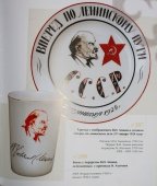 Юбилейный подарочный бокал с профильным изображением В. И. Ленина выполнен с оригинала Н. И. Альтмана (1889-1970) художником М. М. Адамовичем (1884-1947) в 1921 г. Н. И. Альтман дал свое разрешение на использование заводом нескольких его рисунков согласно договору, предварительно заключенному между ним и заводом. Этот же портрет изображен на известной тарелке М. М. Адамовича с купонами трудовых карточек и надписью: «Кто не работает, тот не ест».