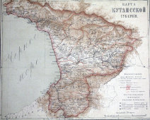 Старинная дореволюционная карта Кутаисской губернии России, бумага, багет, 19 в.Артикул: 9994 Цена: 30 000 руб.