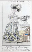 Старинная гравюра «Мода Парижа: маленькие дамские аксессуары»,