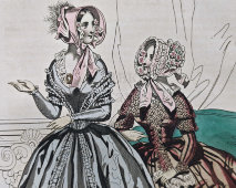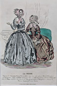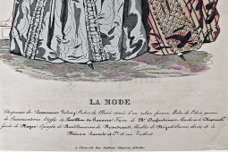 Старинная гравюра в паспарту «Парижская женская мода. Наряды для прогулки» из журнала La Mode,