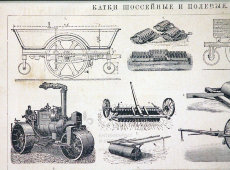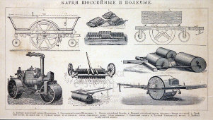 На гравюре представлены шоссейные и полевые катки, используемые в народном хозяйстве на рубеже 19-20 вв.