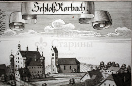 Старинная гравюра «Schlok Korbab», бумага, Германия, 1700-еАртикул: 17795 Цена: 24 500 руб.