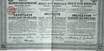 Облигация в тысячу марок германской имперской валюты, Общества московско-киево-воронежской железной дороги,