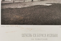 Старинная фотогравюра «Церковь Святых Бориса и Глеба на Поварской» (ныне утрачена),