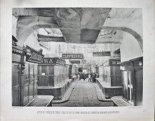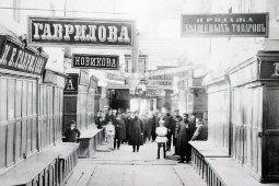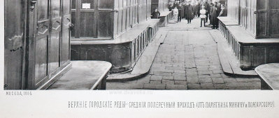 Старинная фотогравюра «Верхние городские ряды, средний поперечный проход от памятника Минину и Пожарскому»,