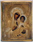Серебряная икона Казанской Божьей Матери в деревянном киоте, 84 пробаАртикул: 8697 Нет в наличии