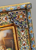 финифть, серебро 925 пробы, глухая скань, горячая эмаль, золочение.