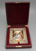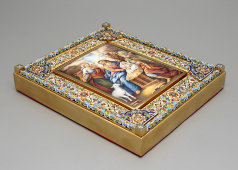 Автор: художественная мастерская «Финифть и филигрань» Материал: финифть, серебро 925 пр. Размер: 19,7х17 см, футляр 25,7х23 см Вес: 993 г |