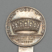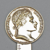 Старинный нож для вскрытия писем совмещенный с линейкой относится к эпохе Наполеона I и может иметь символическое или памятное значение, связанное с его коронацией в Италии. На рукоятке ножа в виде медальона с разных сторон написано: «Наполеон император Франции» и «Наполеон король Италии», а также дата римскими цифрами — 23 мая 1805 года — день коронации Наполеона как короля Италии в Милане.