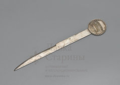 Редкий антикварный памятный нож с линейкой для вскрытия писем «Коронация Наполеона в Италии», белый металл, Италия, нач. 19 в.Артикул: 19006 Цена: 15 000 руб.