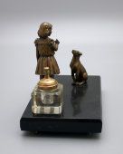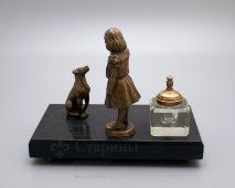 Чернильница на мраморной подставке «Девочка дрессирует собаку», бронзаАртикул: 8310 Нет в наличии