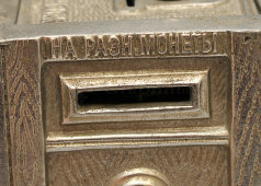 Копилка в рабочем состоянии, но механизм калькуляции накопленных монет работает только с монетами 20 копеек дореволюционного образца. Для накопления можно использовать отверстие «На разн. монеты».