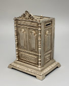Антикварная механическая копилка для монет «Сберегательная касса на 20 копеек», Фабрика «Труд», Варшава, н. 20 вв.Артикул: 12744 Нет в наличии