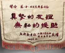 Китайский флаг с аппликацией иероглифов из бархата на шелке, подарок китайской стороны советскому инженеруАртикул: 8870 Нет в наличии