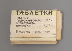 Упаковка из-под таблеток натрия гидрокарбоната и экстракта красавки, Казанский Химфармзавод, сер. 20 в.Артикул: 17611 Цена: 2 500 руб.