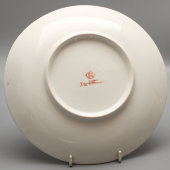 фарфор, надглазурная полихромная роспись, позолота, на обратной стороне стоит монограмма художника.