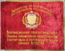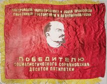 Наградное знамя «Победителю социалистического соревнования десятой пятилетки», бархат, вышивка, аппликация, Костромской облпотребсоюз, кон. 1970-хАртикул: 7808 Цена: 35 000 руб.