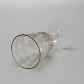 Старинный бокал для вина, декорированный на тему басни «Лисица и виноград»,