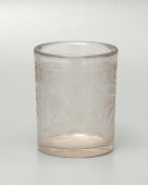 Старинный стакан с вензелем «Д», декорированный гравированной композицией на тему басни «Лебедь, рак и щука»,