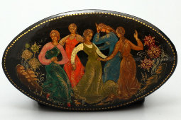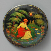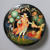 Винтажная круглая брошь «Иванушка и Царевна-лягушка», Палех, 1970 г.Артикул: 13658 Цена: 4 500 руб.
