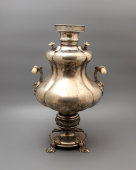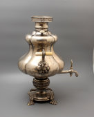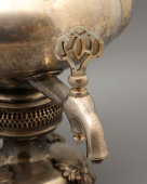 Cамовар фабрики мельхиоровых изделий А. Кач, мельхиор, серебрение, кость, Санкт-Петербург, 1860-еАртикул: 9761 Нет в наличии