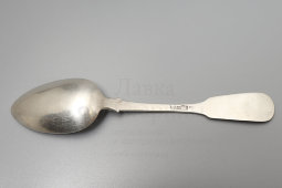 Простая старинная столовая серебряная ложка, 84 проба, фабрика Василия Семенова, Москва, 1856 г.Артикул: 14927 Нет в наличии