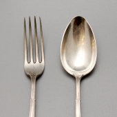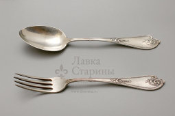 Серебряный комплект из вилки и ложки, русское серебро 84 пр., Россия, до 1917 г.Артикул: 11186 Нет в наличии
