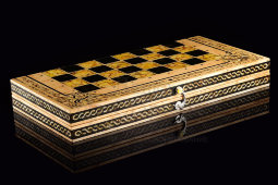 Материал: карельская береза, янтарь, композит Размер: 56х56х8 см Вес: в кейсе 9,5 кг, изделие 6 кг |