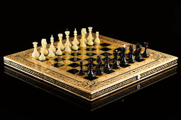 Материал: мореный дуб, янтарь Размер: 34,5х25,5х10,5 Вес: в кейсе 5,5 кг, изделие 2,6 кг |