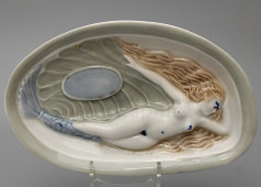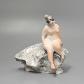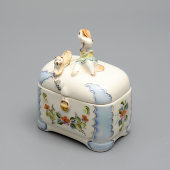 Авторская шкатулка, туалетная коробочка «Девушка с котом», скульптор Золотых Л. Л., Семикаракорская керамика, Россия, 1997 г.Артикул: 17037 Цена: 12 500 руб.