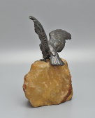 Старинный барометр-анероид в корпусе из камня фигурой орла,