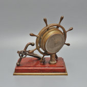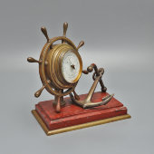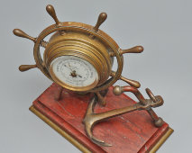 Старинный барометр-анероид в корпусе в виде штурвала на мраморной подставке с якорем, подарок моряку, Lemiere G., Франция, кон. 19, нач. 20 вв.Артикул: 18994 Цена: 160 000 руб.