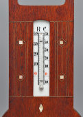 Старинный настенный барометр с комнатным термометром в деревянном корпусе,