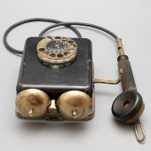 Старинный настенный дисковый телефонный аппарат,