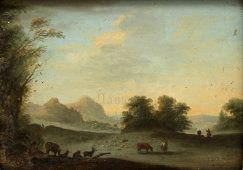 Живописная картина пейзаж «Пастбище», масло, Европа, нач. 20 векаАртикул: 9109 Нет в наличии