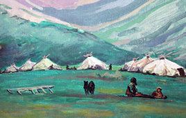 Картина «Кочевой поселок», советская живопись, картон, гуашьАртикул: 10202 Нет в наличии